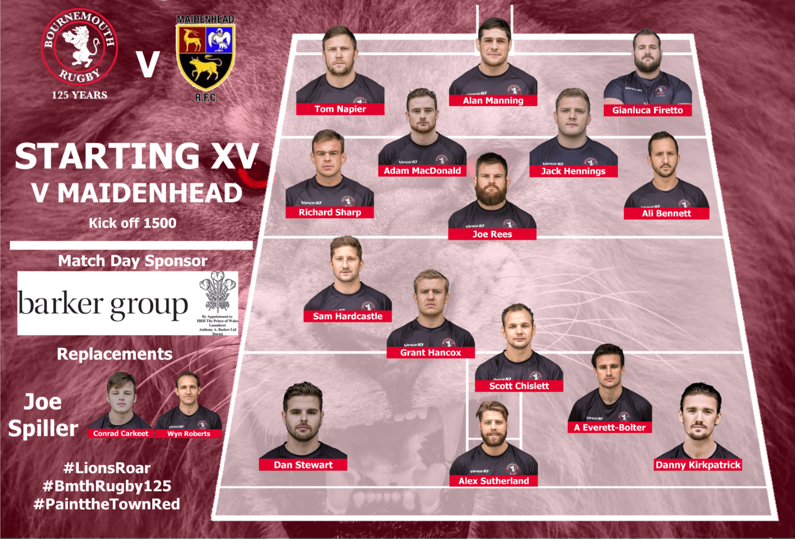 Matt Warick "Good luck lads build on the momentum from last week. Beat your opposite man and work for each other and the win will follow"
