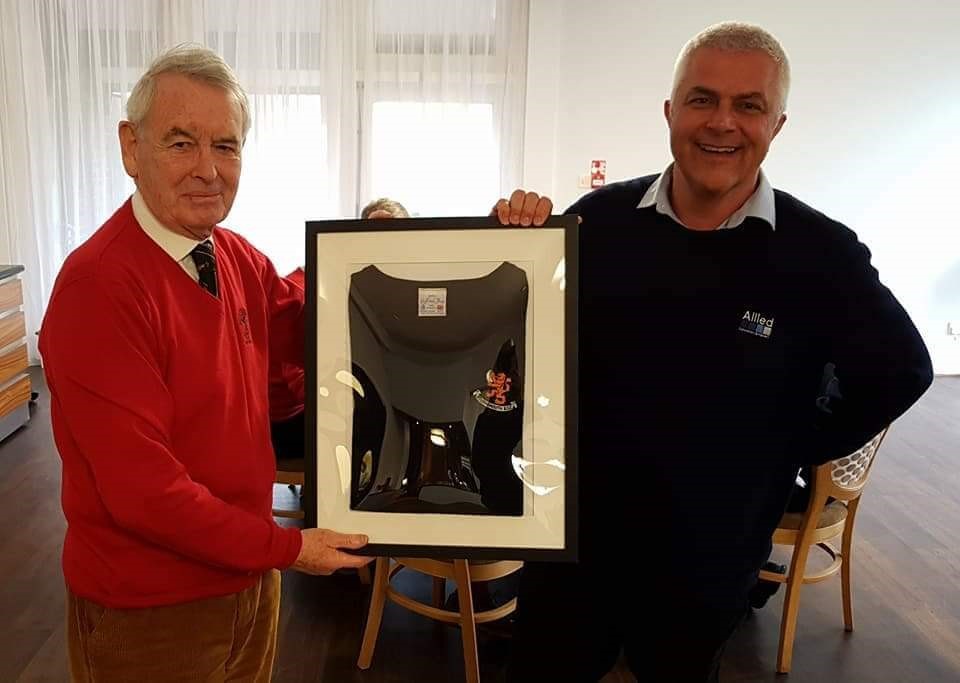 During the pre-match lunch Mike made a speech and congratulated all at Bournemouth Rugby on recent achievements and especially the community and youth initiatives. Keep up the hard work to making Bournemouth Rugby one of the leading clubs in the South of England. Mike also presented his old black v-neck jumper framed, to the club as he has now purchased the new red v-neck.